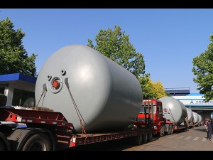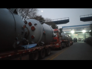 4.5萬升上封頭外包不銹鋼搪玻璃反應釜發貨現場