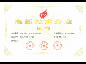 熱烈慶祝淄博太極工業搪瓷有限公司榮獲“高新技術企業”榮譽稱號